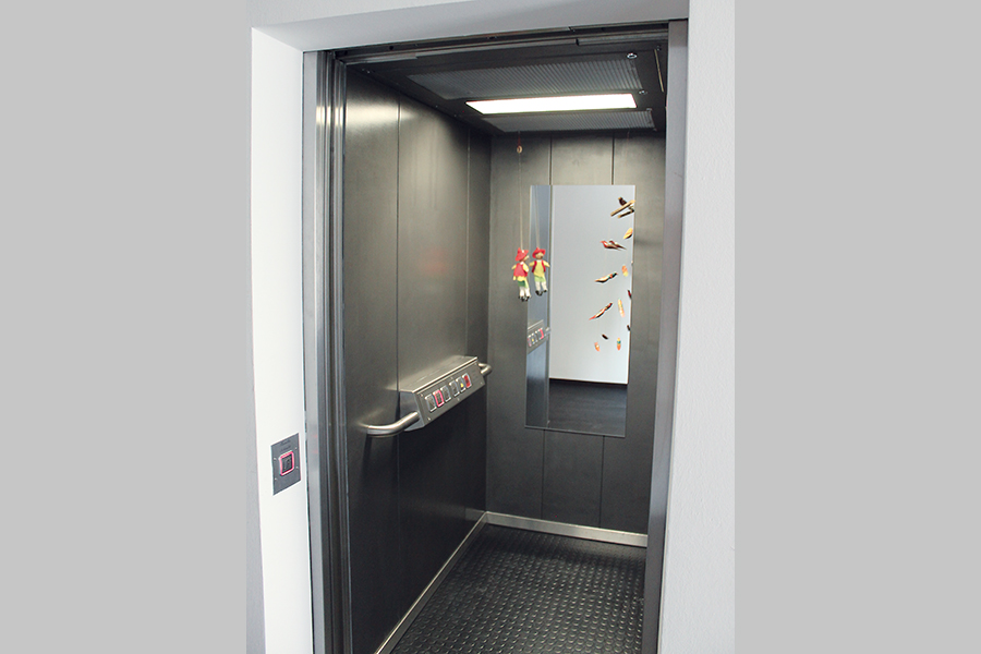 Aber alles "darf" und nichts "muss", dieser Aufzug kann, genau wie ein gewöhnlicher Güteraufzug, auch ohne Mitfahrer von den Stockwerken aus geschickt und geholt werden. Durch Schlüsselbedienung ist sichergestellt, dass Unbefugte den Aufzug nicht bedienen können.